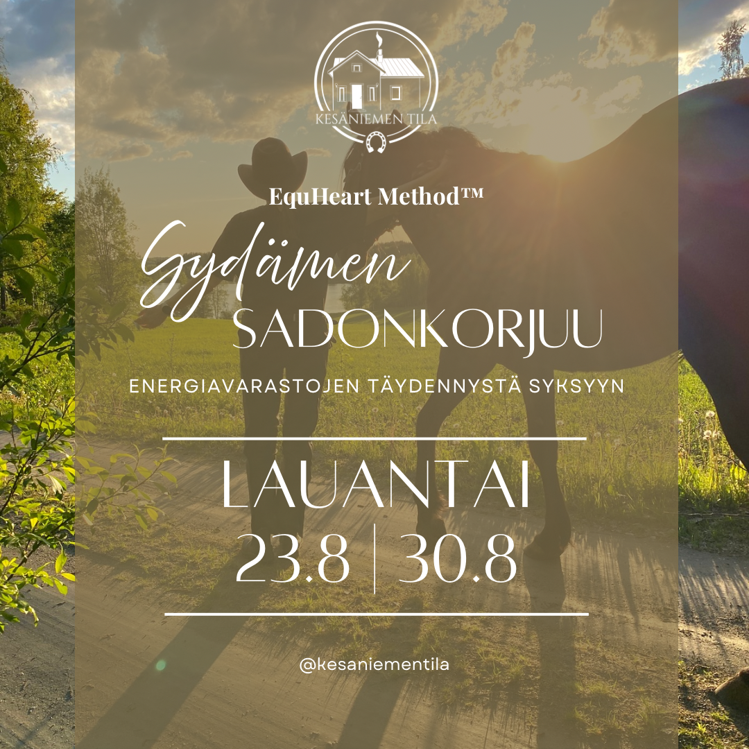 EquHeart -päiväretriitti on pysähtymisen ja sisäisen äänesi päivä, jossa hevosen viisas läsnäolo ja luonnon rauha tukevat sinua palaamaan kehoon, tunteisiin ja oman sydämen rytmiin. Päivän aikana teemme hevosten kanssa Kesäniemen tilan oman Equheart Method® -pohjautuvia läsnäolo-, hengitys- ja maadoittumisharjoituksia.